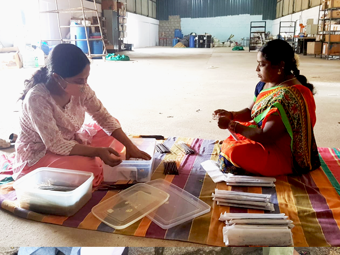 We started at the village community hall in Gundlapochampally, Telangana, benefiting local women. Now based in a larger facility nearby, we handle everything from sorting and cleaning to drying, composting, and product development.